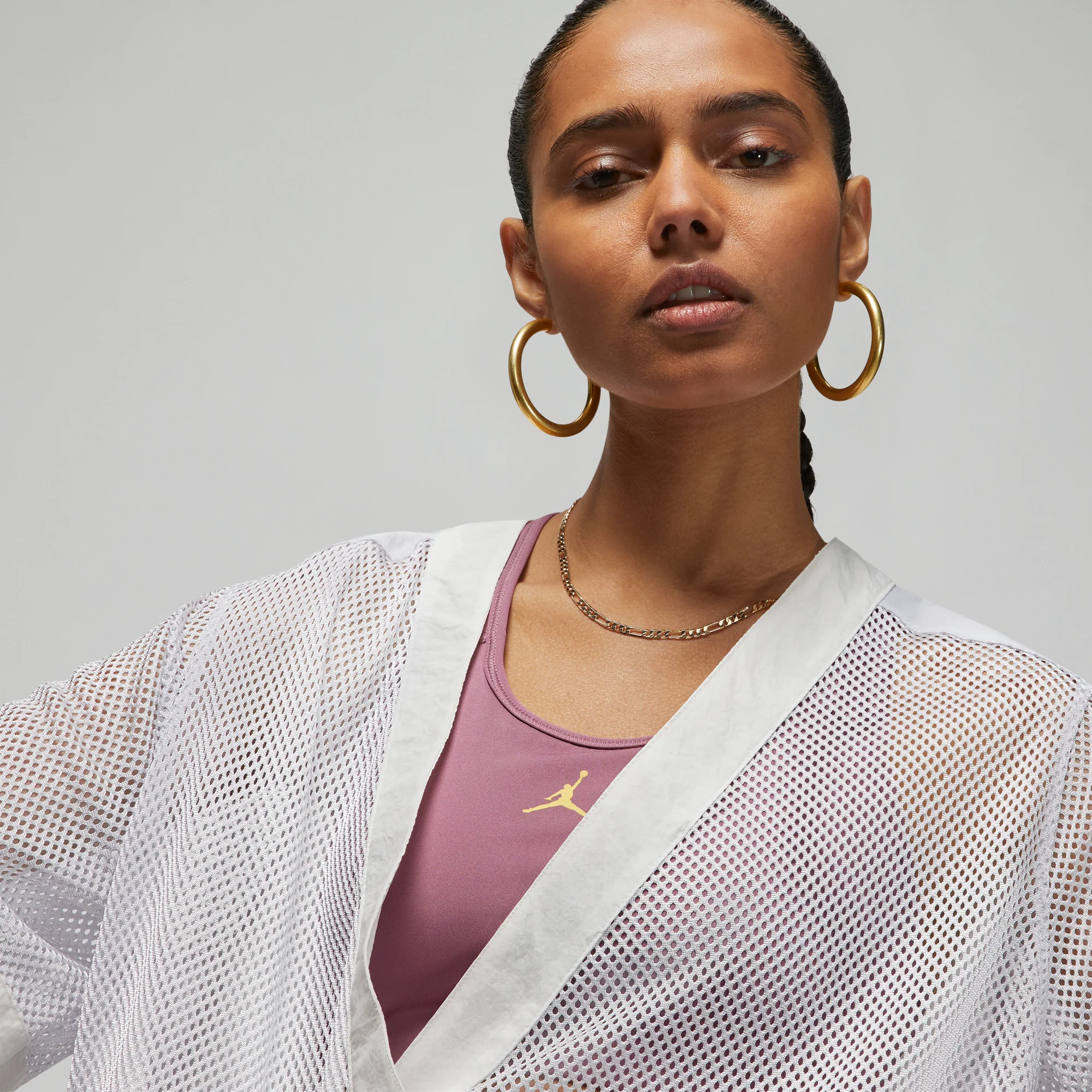 Keep cool in this light and summery layer that ties your whole look together—literally. Sheer, breathable mesh adds dimension to any 'fit, and an assymetrical wrap design lets you customize the silhouette. This product is made with at least 50% recycled nylon fibers.